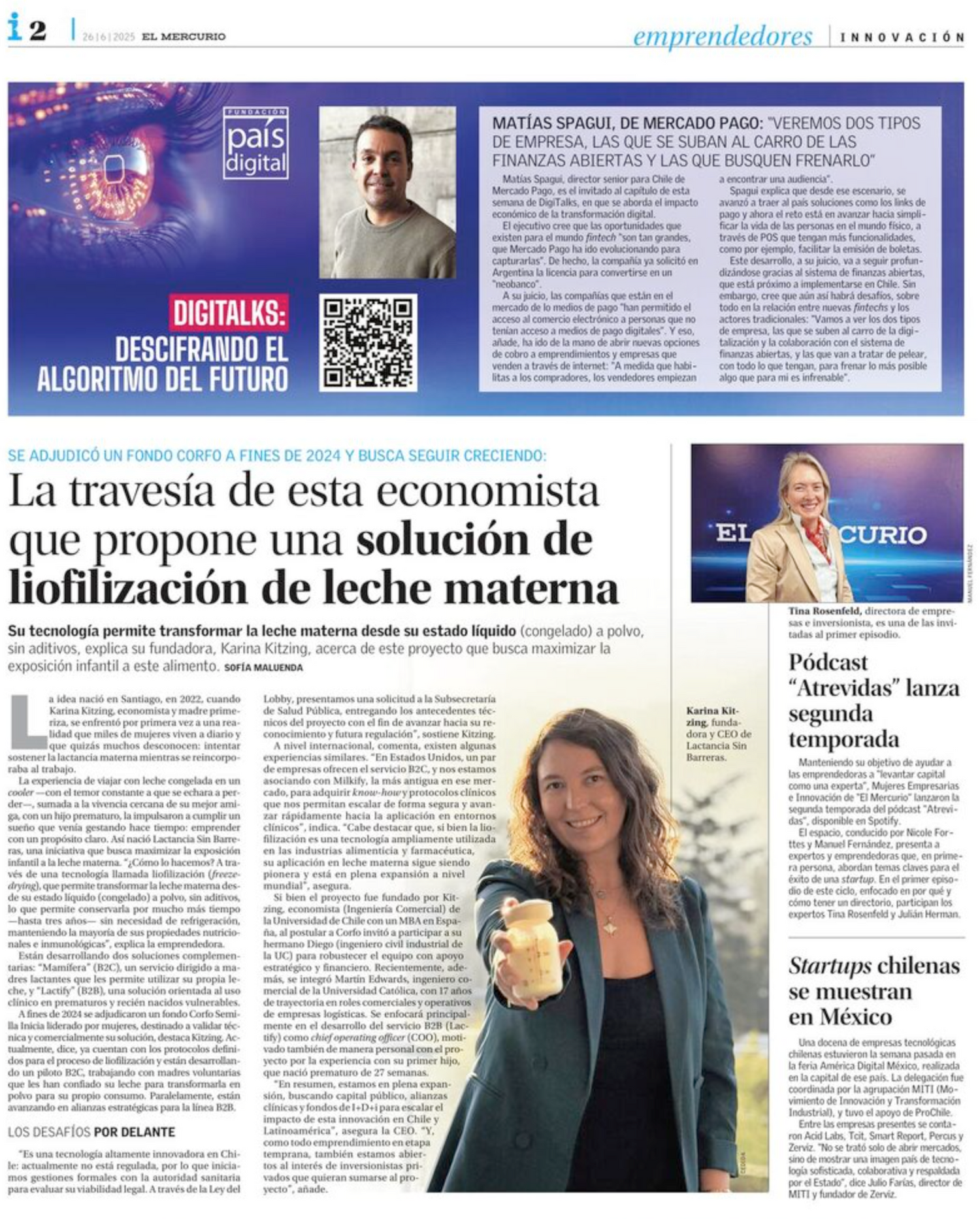 Cofundadora de Milkify Andes desde 2025 en EE.UU. y de Lactify en Chile.